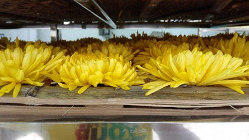 新鮮菊花含水量較高,其中花瓣部分含水量較少,組織較嫩,容易干燥,而花頭部分含水量特大,可達(dá)80%以上,且組織較老,不易失水,菊花是一種組織極不均勻的藥材。因此,遠(yuǎn)圖菊花烘干機(jī)對(duì)芘頭部分進(jìn)行強(qiáng)干燥,而對(duì)花瓣部分進(jìn)行弱干燥。烘出的菊花色澤金黃,花香濃郁,花芯不散。